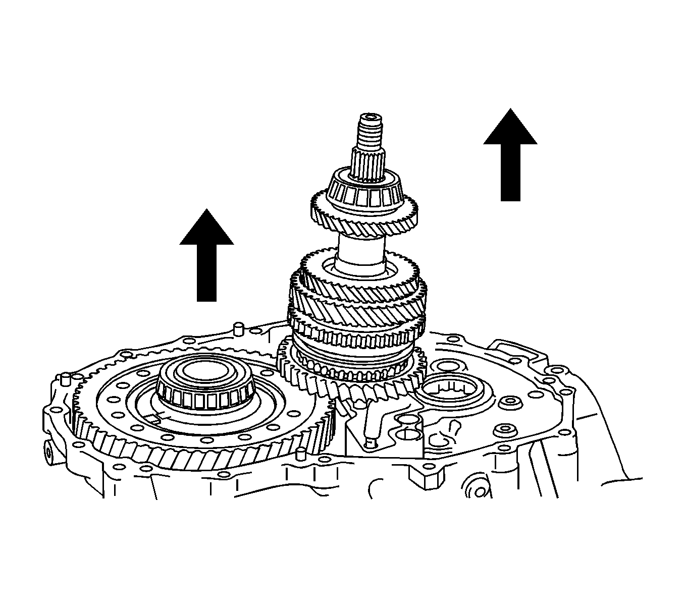 - Remove the reverse gear and reverse idler thrust washer from the reverse idler gear shaft.