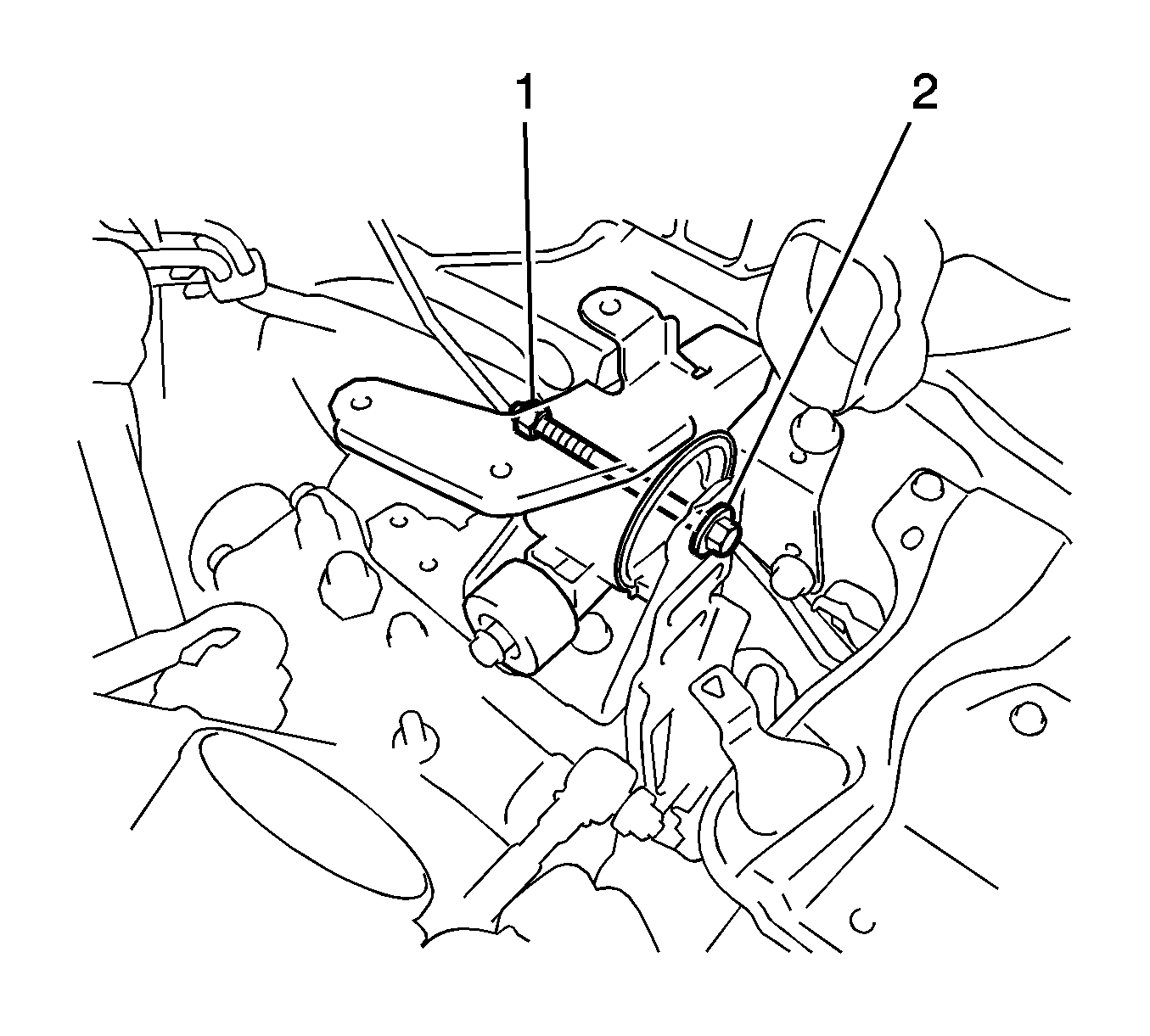 - Install the front engine mounting bracket with the bolts (1) and tighten to