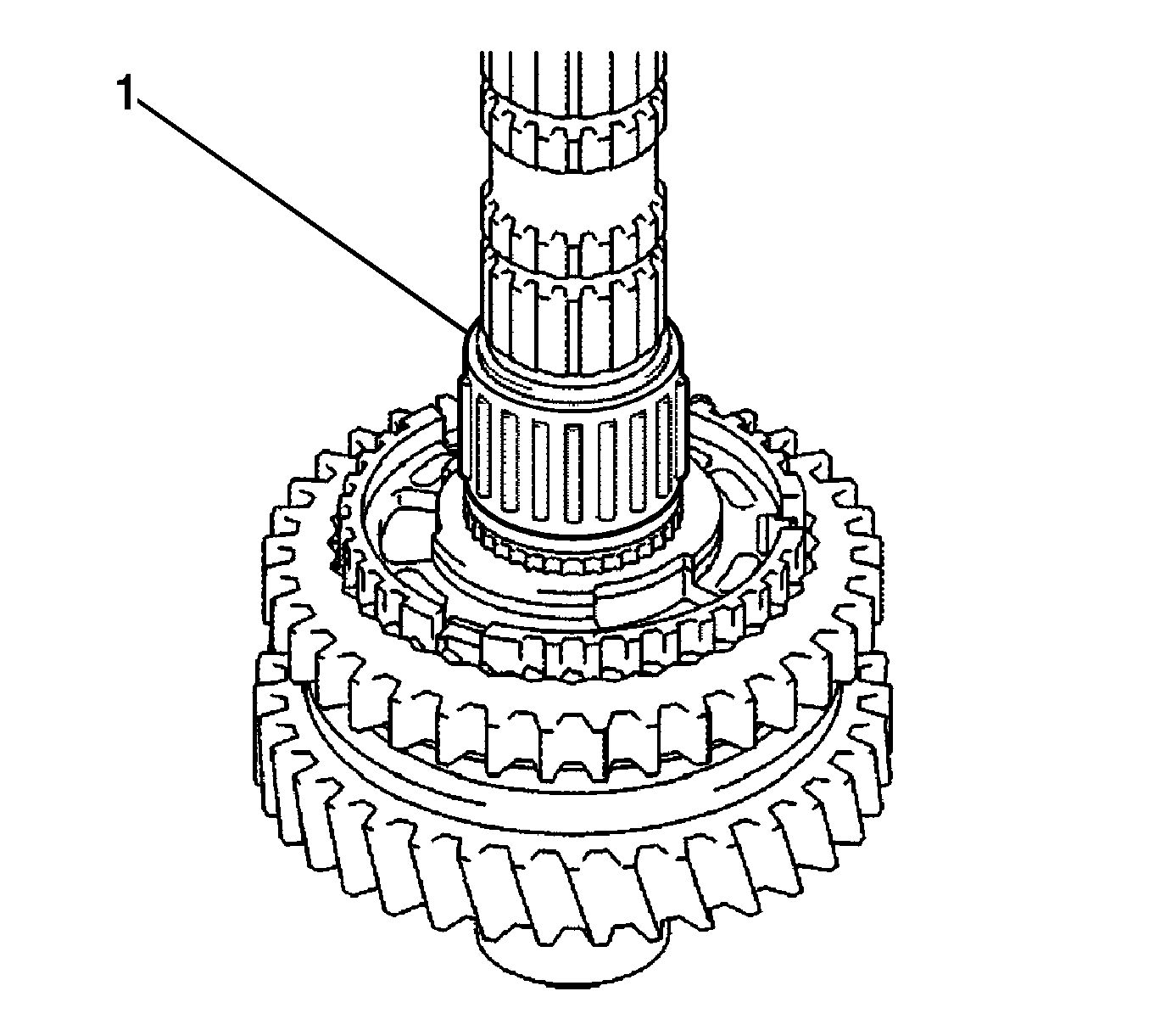 - Coat the 1st gear needle roller bearing (1) with gear oil and install it onto the output shaft.