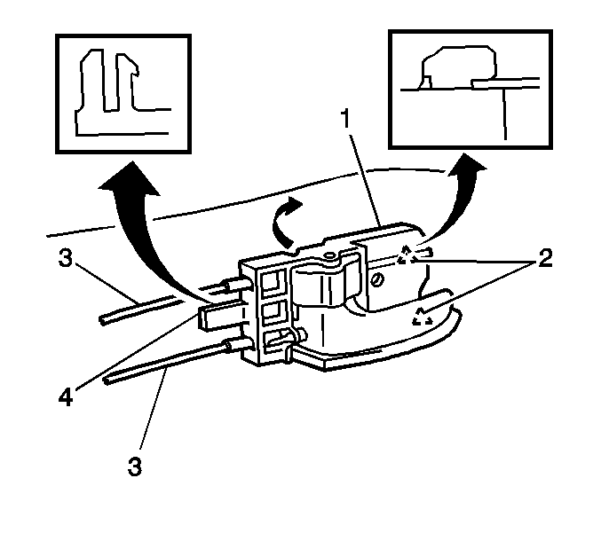Slide the handle (1) rearward and pull it away from the rear side door.