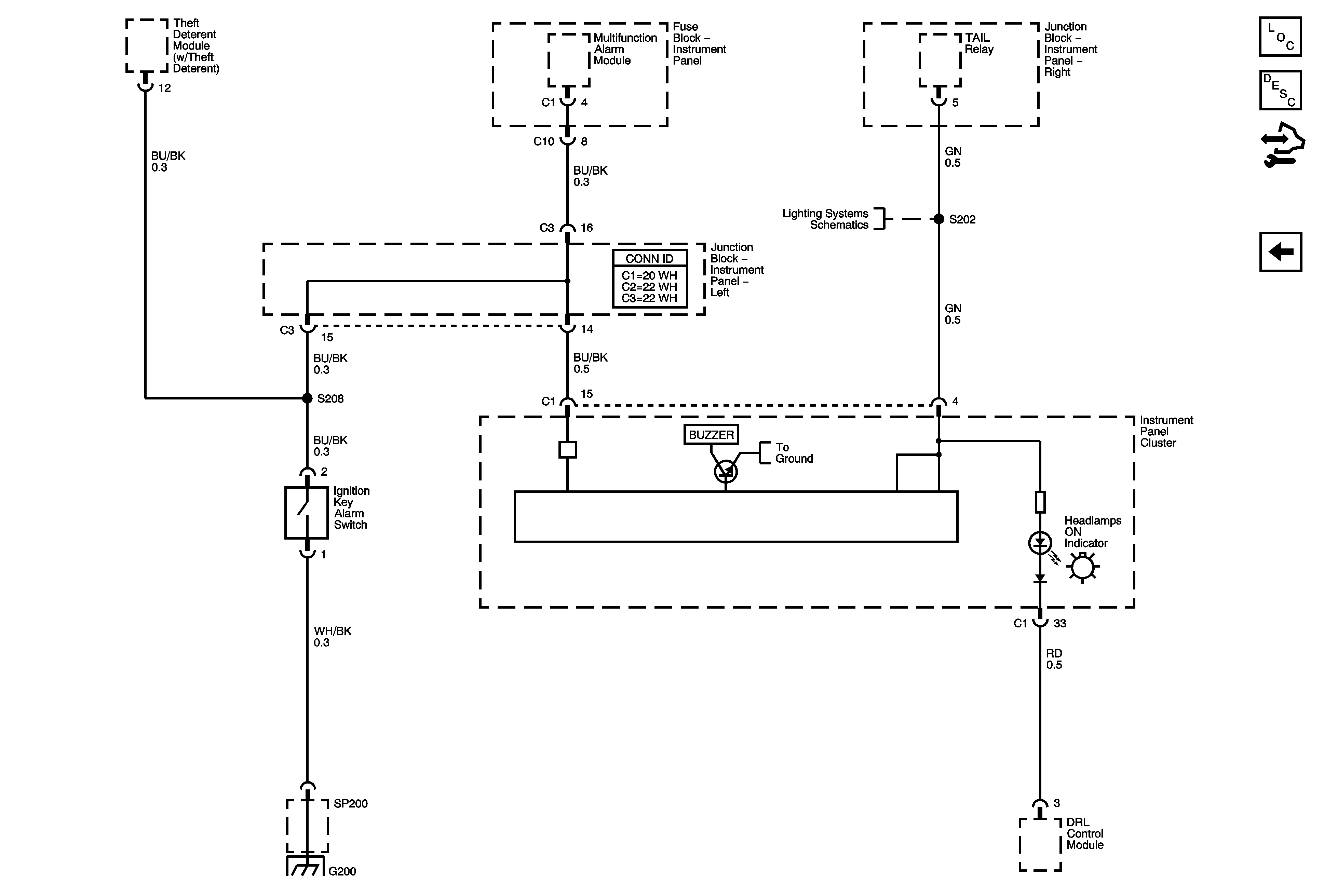 Headlights ON, Ignition Key, Reverse Warning Indicator