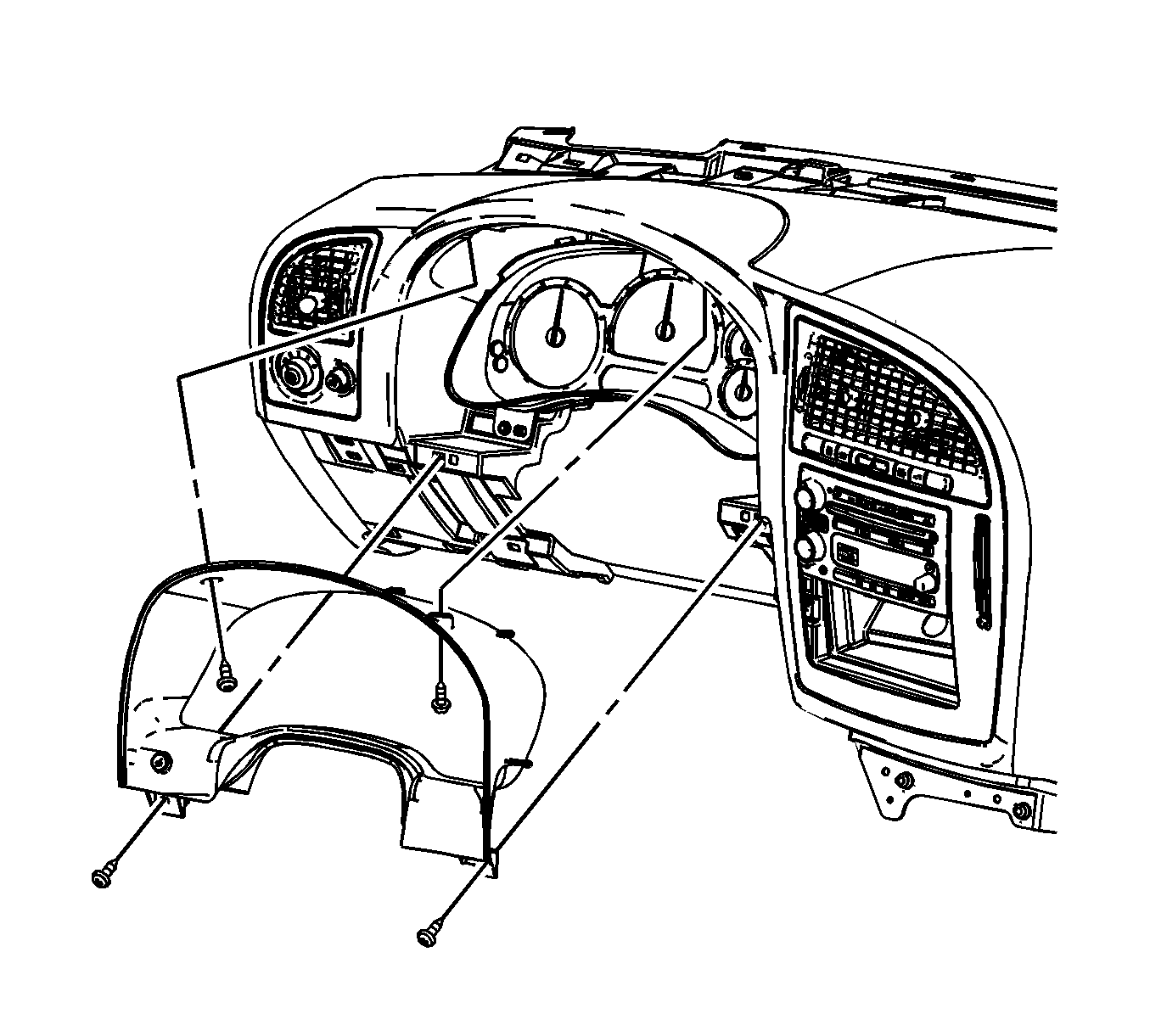 3. Remove the knee bolster trim panel. Refer to Driver Knee Bolster Panel Replacement .