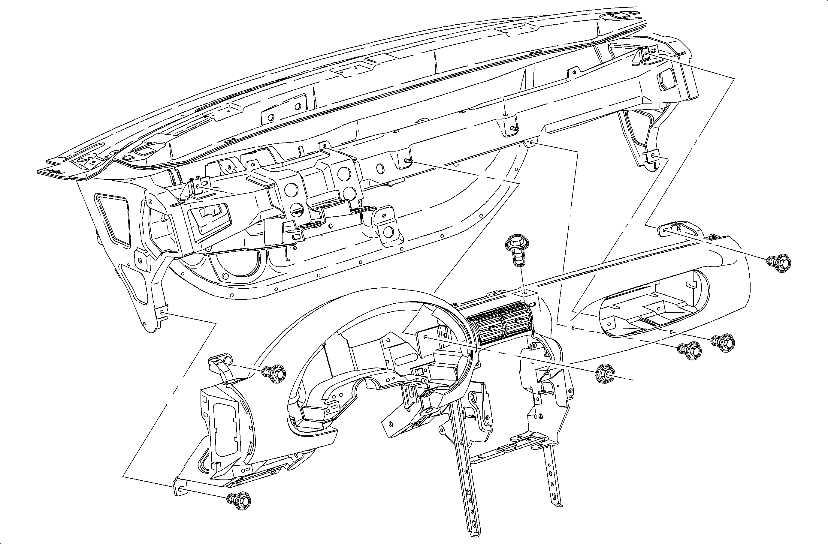 73. Remove the fasteners and pull the instrument cluster trim bezel rearward at the clip locations.